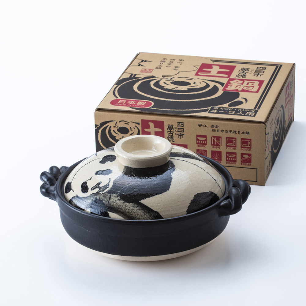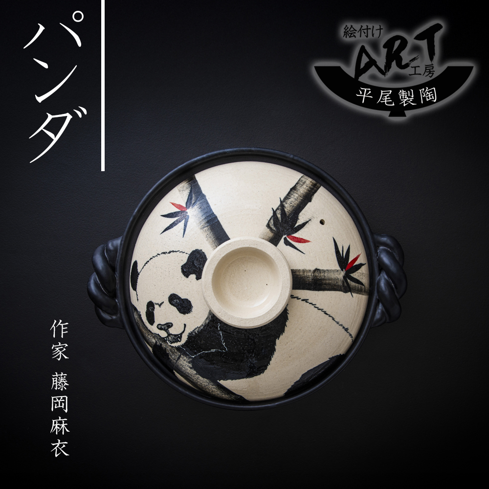 【萬古焼】暮らしの美術品 絵付けアーティストの個性が光るHandmade土鍋。絵付けART工房・平尾製陶 土鍋9号「パンダ」【手描き、土鍋、ハンドメイド、アート、デザイン、鍋、 家庭用、4人用、4人前、家族、冬、煮込み、手芸、工芸、三重県、四日市市、ふるさと納税】