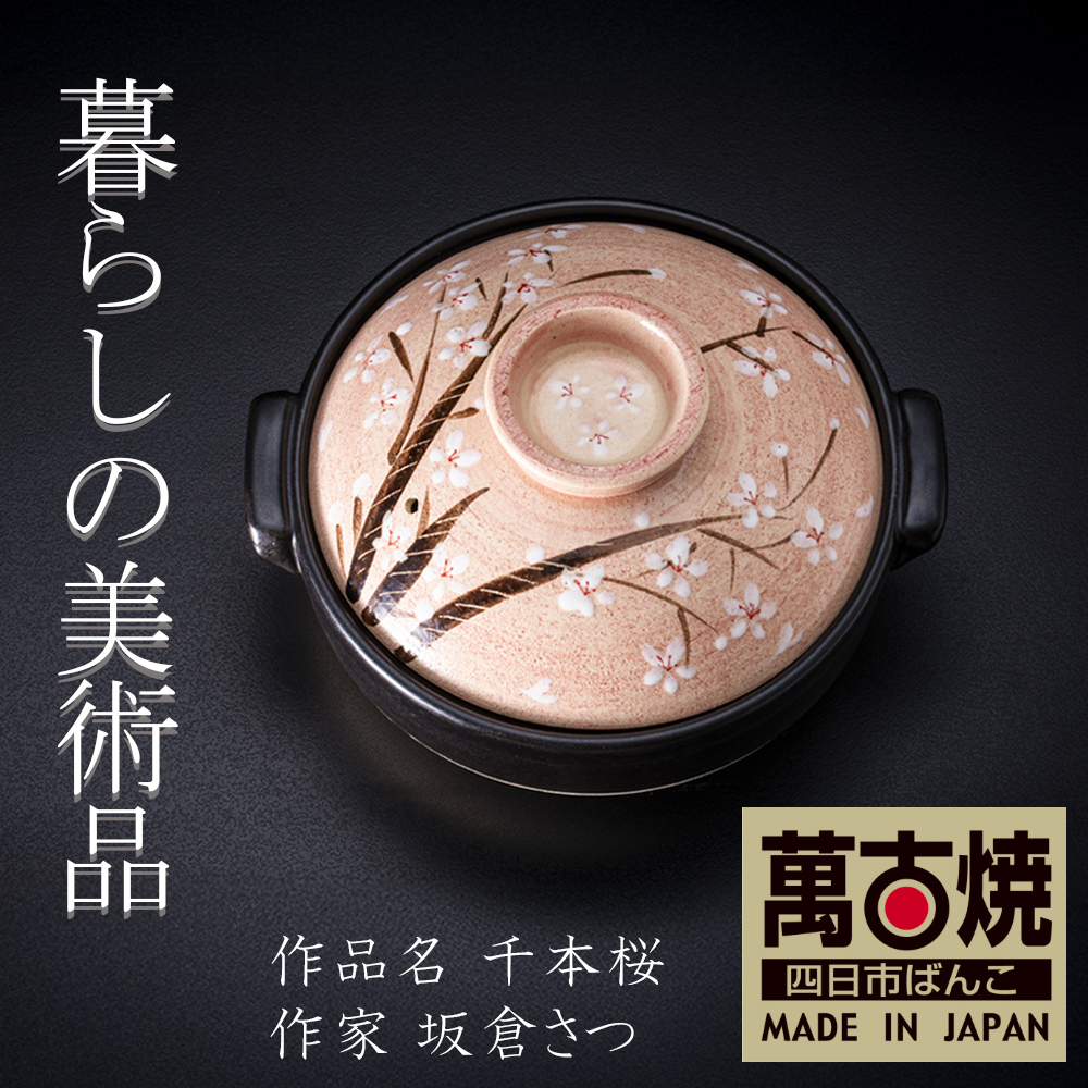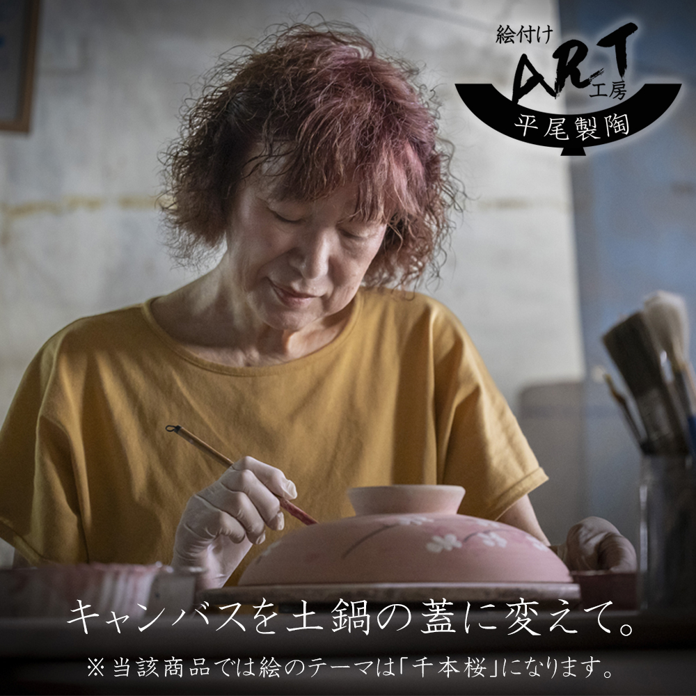 【萬古焼】暮らしの美術品 絵付けアーティストの個性が光るHandmade土鍋。絵付けART工房・平尾製陶 土鍋8号「千本桜」 【手描き、土鍋、ハンドメイド、アート、デザイン、鍋、 家庭用、3人用、4人用、3人前、4人前、家族、冬、煮込み、手芸、工芸、三重県、四日市市、ふるさと納税】