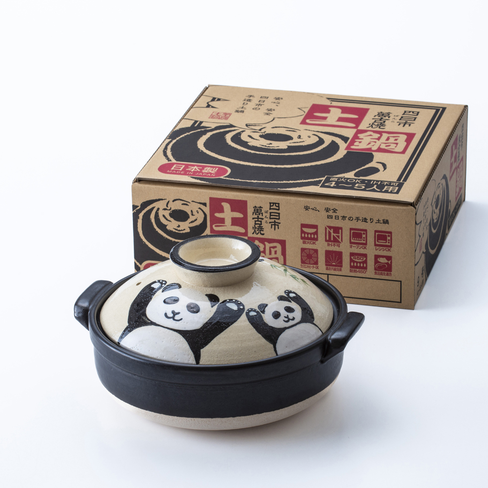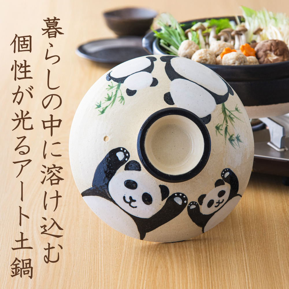 【萬古焼】暮らしの美術品 絵付けアーティストの個性が光るHandmade土鍋。絵付けART工房・平尾製陶 土鍋9号「なかよしパンダ」【手描き、土鍋、ハンドメイド、アート、デザイン、鍋、 家庭用、4人用、4人前、家族、冬、煮込み、手芸、工芸、三重県、四日市市、ふるさと納税】