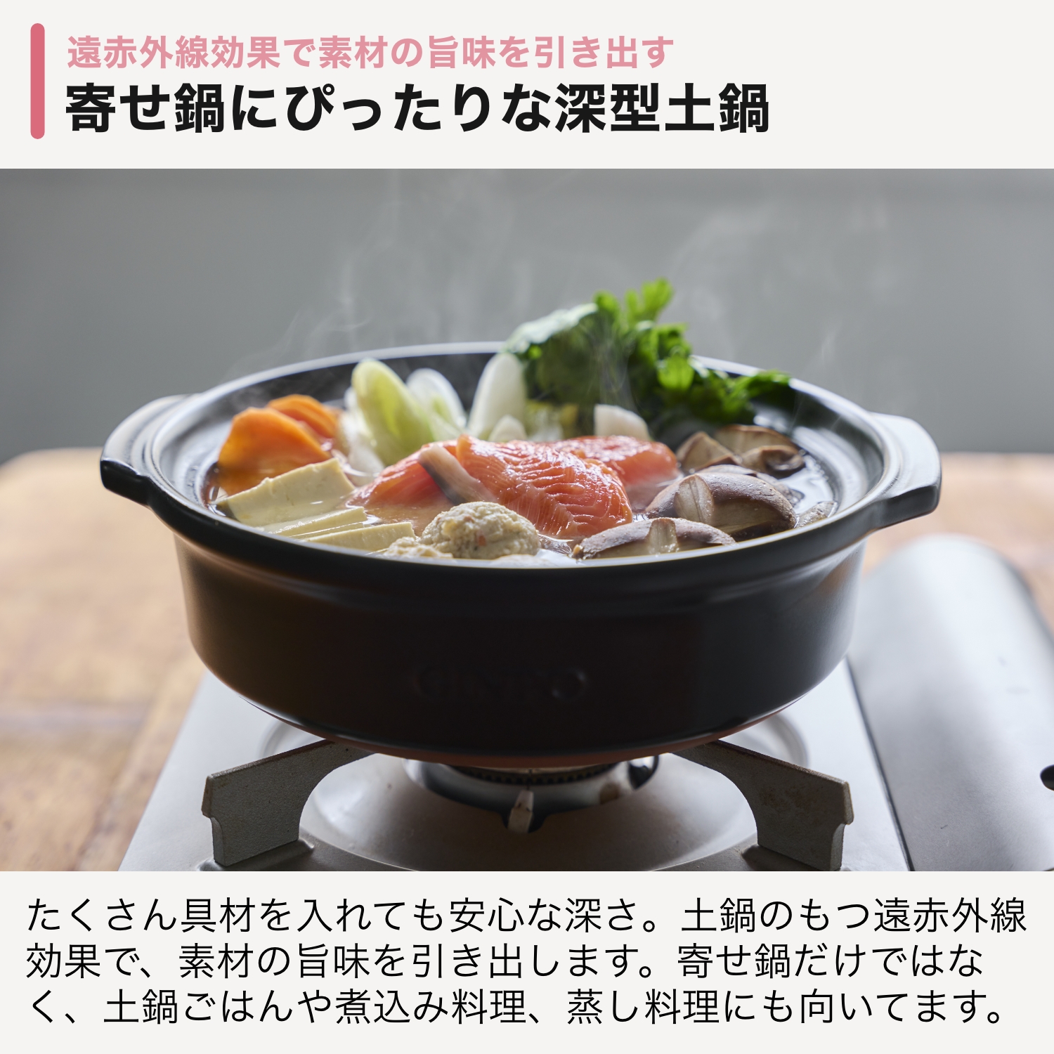 ・保温性抜群:土鍋特有の蓄熱性で、料理を温かいまま長くキープ