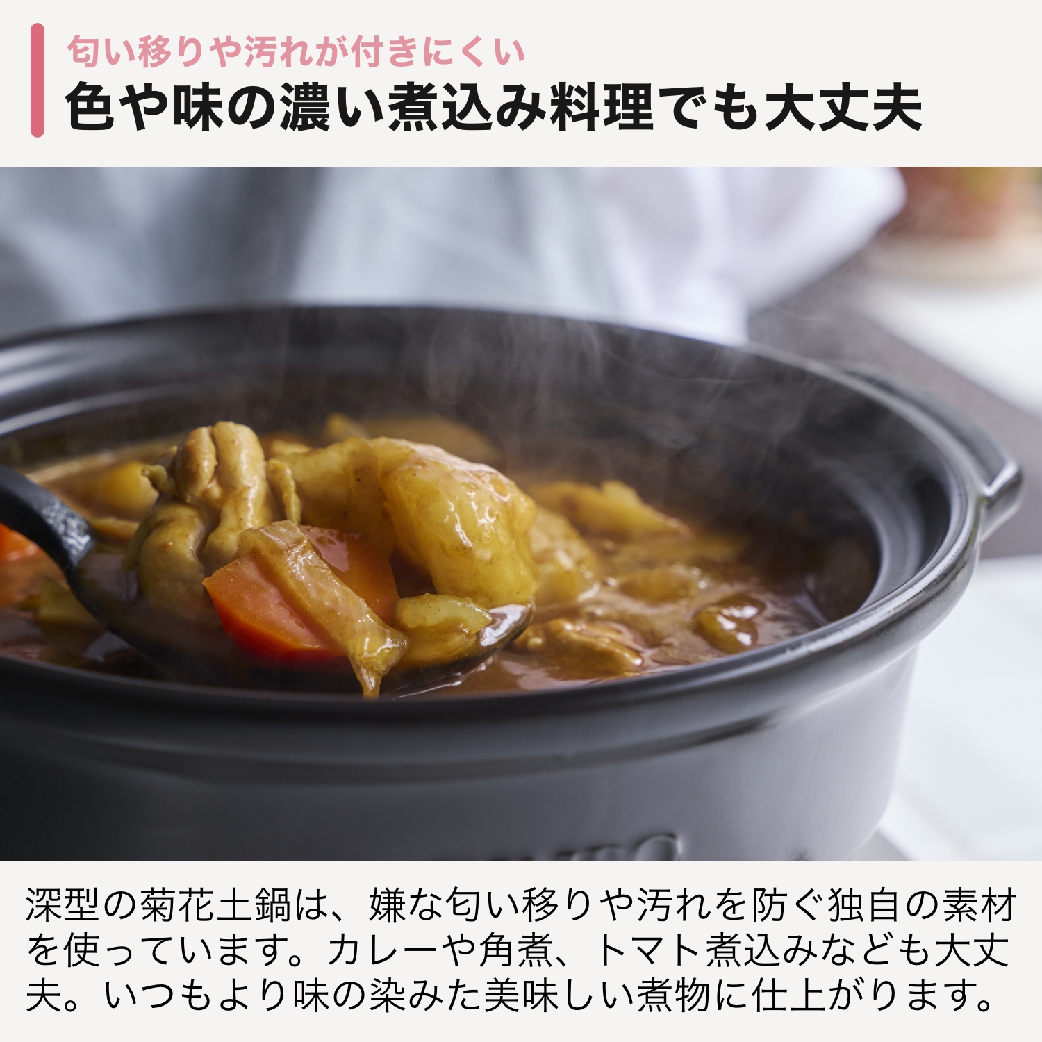 煮込み料理や炊き込みご飯、冬の鍋料理はもちろん、アウトドアや平日の作り置きにも活躍。