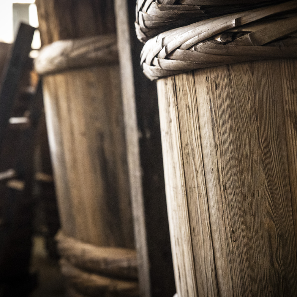 伊勢蔵では100年以上、木桶づくりにこだわり、手間と時間をかけて生産しています。