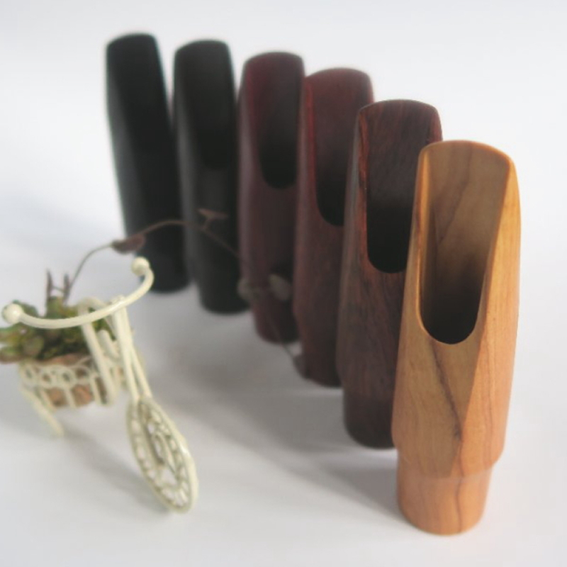 サックス用木製マウスピースは、音質的にはエボナイトとメタルとの中間的位置のマウスピースです。