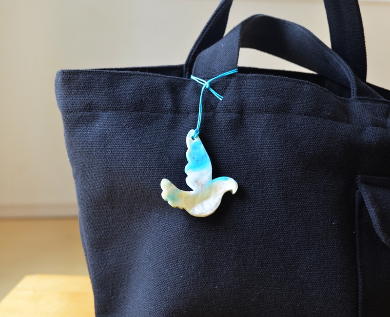 アオバトのチャームは、ブックマーカーやアクセサリー、キーホルダーなどとして身につけることができます。