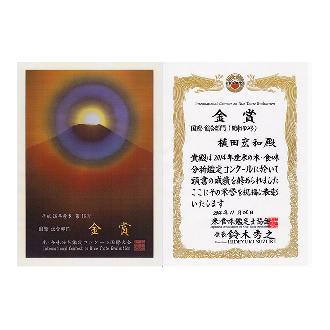 日本全国の生産者がお米の味を競う国内最大の「米・食味分析鑑定コンクール:国際大会」において、4000以上のエントリーの中から国際総合部門の最高上位17人の金賞に輝くなど、全国的にも評価が集まっています。