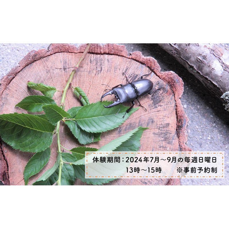 ※こちらの体験には、カブトムシ又はクワガタムシの成虫、飼育容器、マット、幼虫のエサは代金に含まれませんので、飼育されているカブトムシ等を各自ご持参ください。