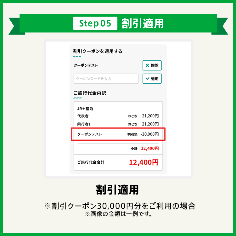 ※JR東日本びゅうダイナミックレールパックはWEB販売専用商品です。本クーポンは、予約時に利用可能なクーポンコードでのお渡しとなります。ご予約時にクーポンコードを入力してご利用ください。