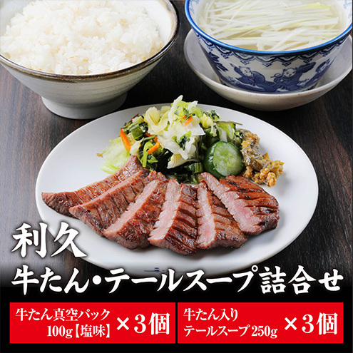 【特別寄附額】 牛タン & テールスープ 各3個 セット 利久 牛たん タン塩 塩味 厚切り牛タン スープ 牛 牛肉 肉 お肉 タン タン中 タン元 厚切り 焼肉 焼き肉 惣菜 おかず 真空パック ギフト プレゼント お中元 お土産 冷凍 宮城 宮城県 岩沼市