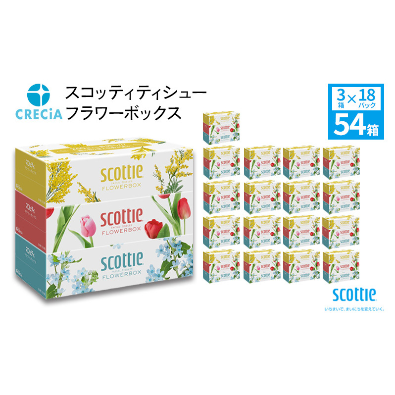 ティッシュ スコッティ フラワーボックス 54箱 (3箱×18パック) ティッシュペーパー ティシュー ティシューペーパーボックスティッシュ ボックスティシュー ティシュペーパー 防災 災害 日用品 消耗品 生活用品 生活必需品 まとめ買い 宮城県 岩沼市