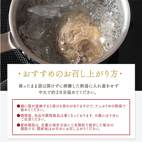 また、ハンバーグの美味しさを引き立てる専用ソースも付属しておりますので、湯せんでいつでも簡単にお召し上がり頂けます。