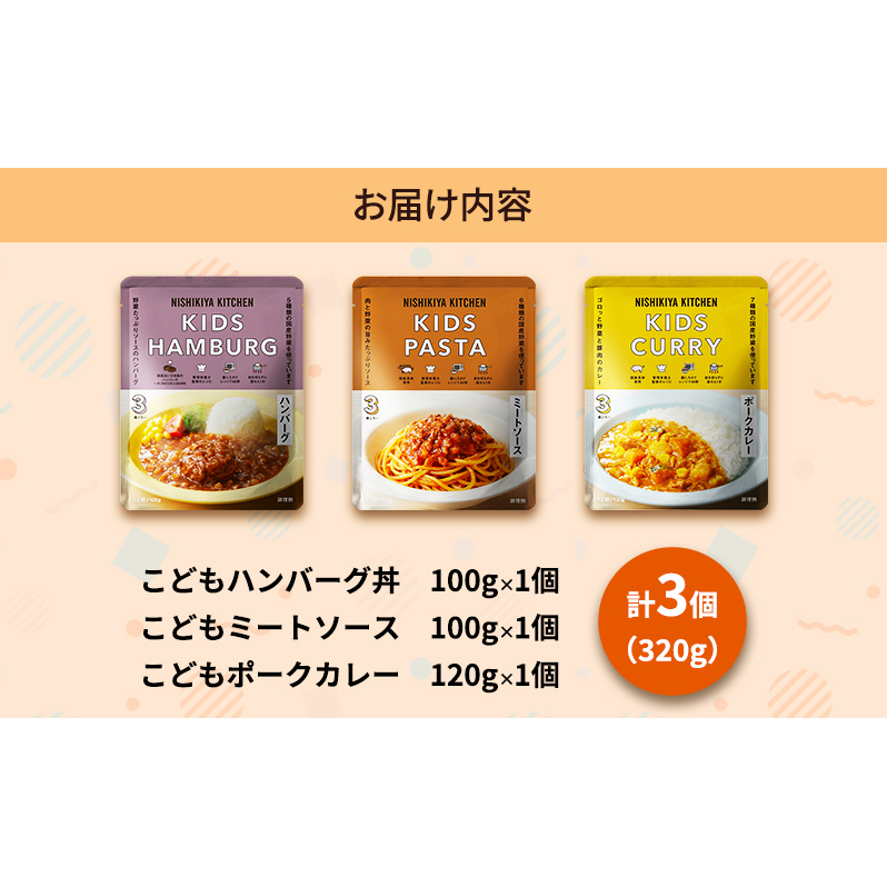 【定期便4回】レトルト こども シリーズ 3個 セット 3歳 ~ NISHIKIYA KITCHEN レトルト レトルト食品 非常食 備蓄 贈り物 プレゼント ギフト 贈答品 ニシキヤキッチン にしき ニシキ にしき食品 岩沼