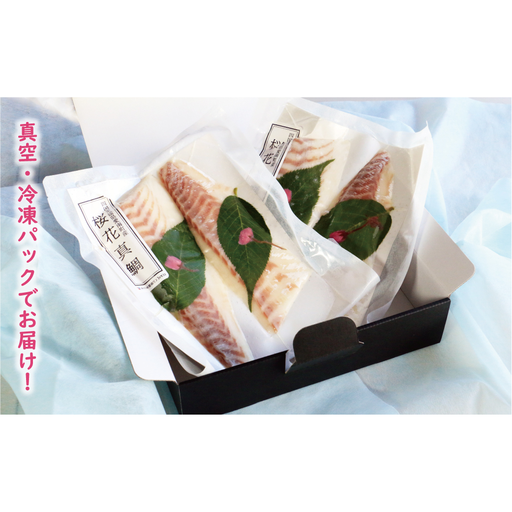 この真鯛に塩漬けした桜の葉と花を真空パックすることで、ほのかに桜香る風味豊かな切り身に仕上がっています。