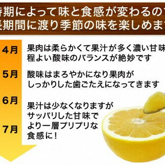 黄色い果実ですがやさしい甘さと酸味で春から夏まで柑橘の味を楽しめて時期ごとに味の変化も楽しめるさわやか柑橘です。