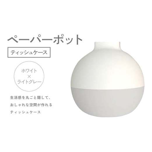 7. ペーパーポット(ティッシュケース)ホワイト×ライトグレー ギフト プレゼント ティッシュ トイレットペーパー ケース F6P-2607