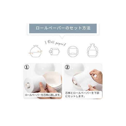 詰め替えは簡単! 箱入りや袋入りのティッシュを取り出して、かぶせるように入れるだけ。トイレットペーパーは芯棒に通すだけ。あっという間にセット完了!