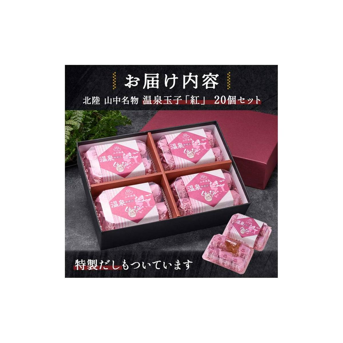山中温泉 温泉玉子 紅(くれない) 20個(5個入り4パック)だし付き 朝食 おすすめ 温泉卵 詰め合わせ お取り寄せ ギフト F6P-2815