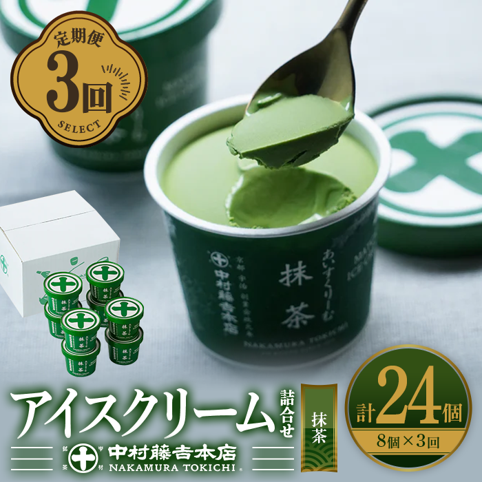 <定期便・全3回>《中村藤吉本店》濃厚で豊かな味わいの抹茶アイスクリーム詰合せ(1種・8個×3回) 特産品 宇治茶 宇治抹茶 抹茶 アイス アイスクリーム スイーツ デザート 【uj-AZ019】【中村藤吉本店】