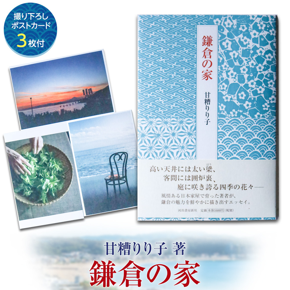 幼少より鎌倉で暮らしてきた地元の作家・甘糟りり子の『鎌倉の家』のサイン本と甘糟りり子撮影によるポストカードのセットです。