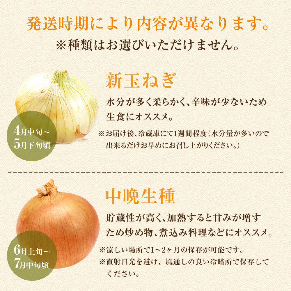 ※お届け後、冷蔵庫にて1週間程度(※新玉ねぎは水分量が多いので出来るだけお早めにお召し上がりください。)