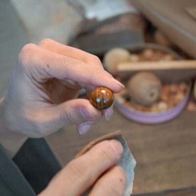 その松に、「命を司る樹」との意味を持つ、深緑色の希少銘木[生命樹]を合わせました。聖徳太子伝授と伝わる伝統の技を受け継ぐこの近江八幡の地で、職人がひとつひとつ丁寧に平玉に挽き上げた珠は、[松]の木目がより一層際立ちます。存在感のある[生命樹]の落ち着いた色彩との組み合わせが大変美しい念珠です。