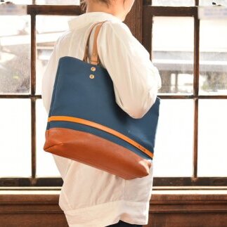 ここ近江八幡は、明治時代、県内の有志が集まり、国内初の西欧式帆布製造を完成させました。こういった歴史的なモノづくり精神にインスパイアされ、滋賀県で作られた帆布を使った八幡帆布鞄を作りました。八幡堀近くの工房で一つ一つ丁寧に鞄を手作りしております。使用している帆布は8号帆布で耐久性も高く、革も国内で作られている高級なものを使用しております。デザインは、八幡堀をイメージし、古い中にも新しさがある、レトロモダンをイメージして作っております。幅広い年齢層の方にご支持をいただき、最近は海外の旅行者様にも人気のアイテムとなっております。こちらのモデルは裏地が付いており、ポケットがひとつ付いております。バッグの口の部分にはマグネットが付いていますので、安心してご利用いただけます。持ち手も強い革を使用、肩にもかけていただける長さとなっております。
