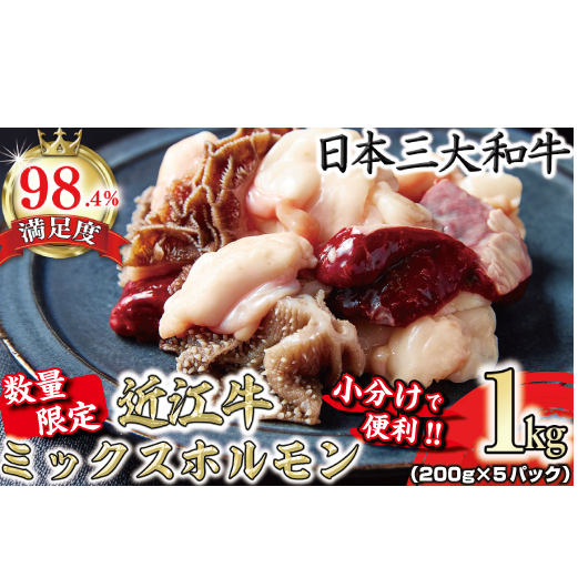 6. 数量限定 希少近江牛 ミックスホルモン1kg(200g×5パック)小分けで便利【FO31W】