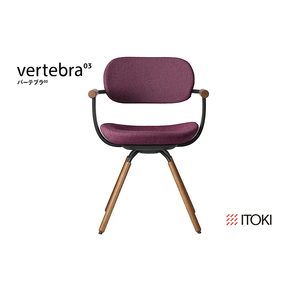イトーキ バーテブラ03 (vertebra03)ワークチェア【 お客様組立品 ( かんたん組立 ) / 4本脚 回転 木タイプ/オークダーク CD張地:X7/プラムパープル 本体:T1/ブラックT / 柴田文江氏デザイン / 日本製 】 オフィスチェア デスクチェア ダイニングチェア KG-899CD-T1X7CF (KG-899CD-T1X7C)【EI123W】