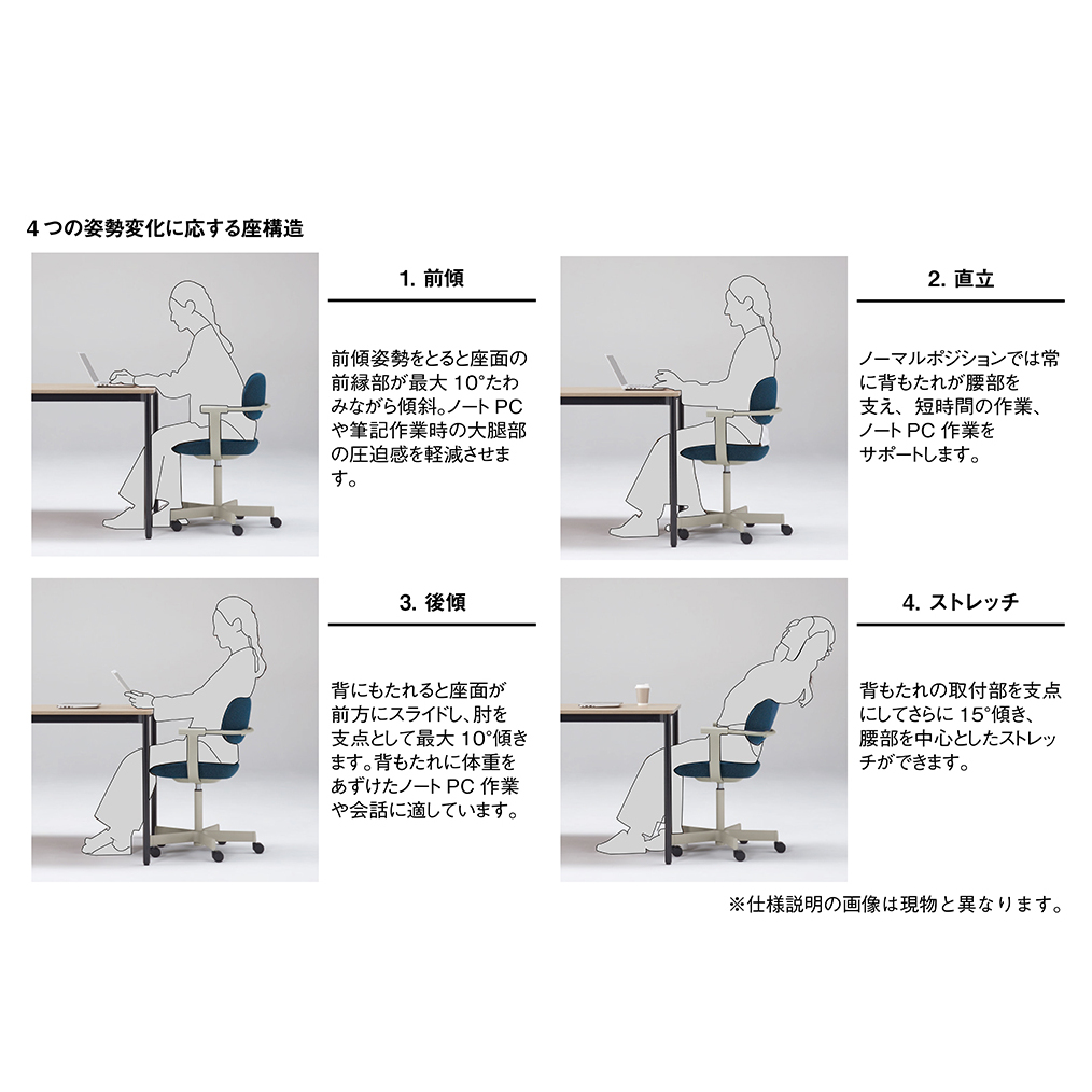 【備考】背と座が自然と動き、どんな姿勢でも座る人の身体に優しくフィット。人間工学に裏付けされたその画期的な座り心地で高い評価を得てきた“Vertebra”シリーズ。“vertebra03”は、その先進の機構をさらにアップデイト。「人間優先のオフィスチェア」という機能コンセプトを、さらに推し進めました。