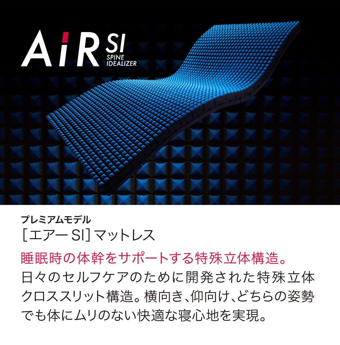 [エアーSI]マットレスは、日々のセルフケアのために開発された特殊立体クロススリット構造マットレス。横向き、仰向け、どちらの寝姿勢でも肉体をバランスよく支える快適な睡眠環境を実現。明日の活力を求める人のコンディショニングをサポートします。