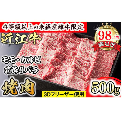【森三商会】4等級以上の未経産雌牛限定 近江牛上焼肉500g(モモ・カルビ・霜降りバラ)【GM12W】