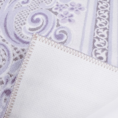 7. 日本製 廊下カーペット 65cm×340cm 【モダンオーナメント】 滑り止め ホワイトラベンダー【1664146】