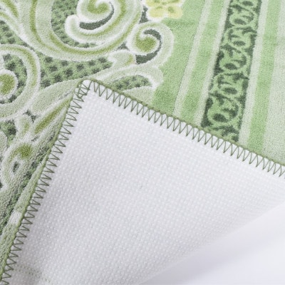 7. 日本製 廊下カーペット 80cm×540cm 【モダンオーナメント】 滑り止め グリーン【1671952】