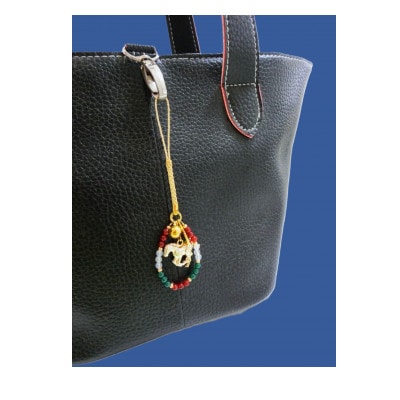 縁起がよい金馬のモチーフに健康健脚、無病息災、厄除の御利益の馬(午)のモチーフの根付ストラップ。午(うま)は、勢いよく駆け抜けるイメージから、躍動感、力強さ、活力、健康、行動力や決断力、前向きな姿勢、勝利を象徴し、古来より「神霊の乗物」とされ珍重されてきました。今回、健康長寿、夫婦円満のメノウをぐるりと一周取り巻き、開運厄除け御守り小判や古来より魔よけの力があるとされる鈴も取り付けました。材質:赤めのう、白めのう、緑めのう、合金(金色仕上げ)、ポリエステル  全長約12cm