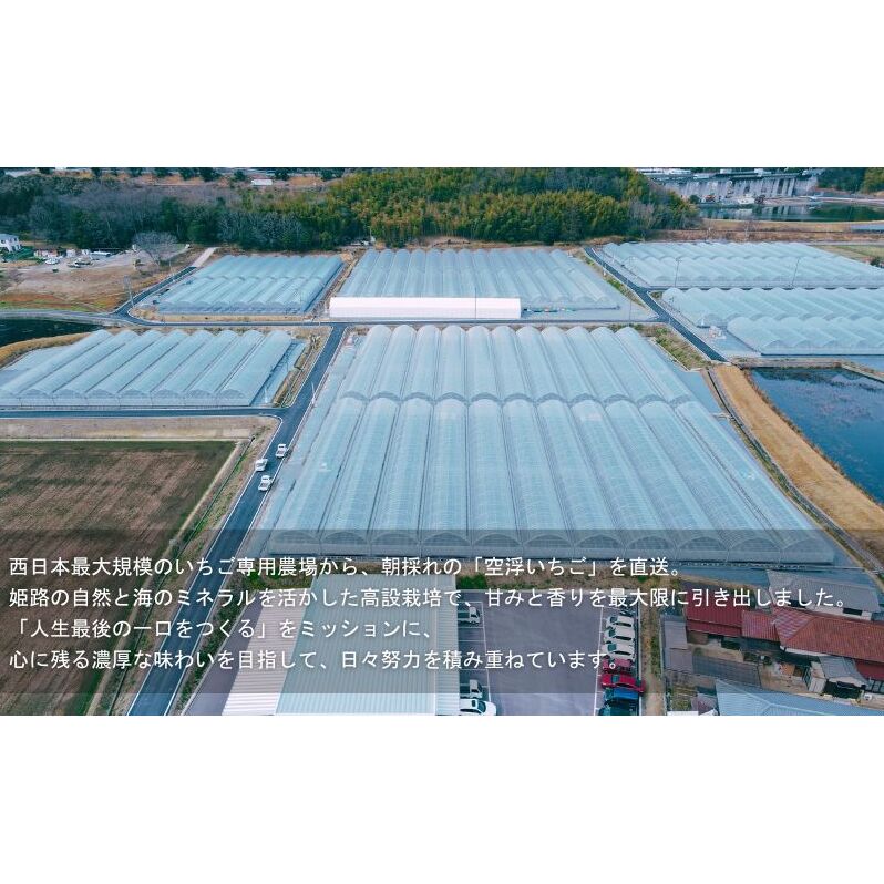 西日本最大規模のいちご専用農場から、朝採れの「空浮いちご」を直送。姫路の自然と海のミネラルを活かした高設栽培で、甘みと香りを最大限に引き出しました。