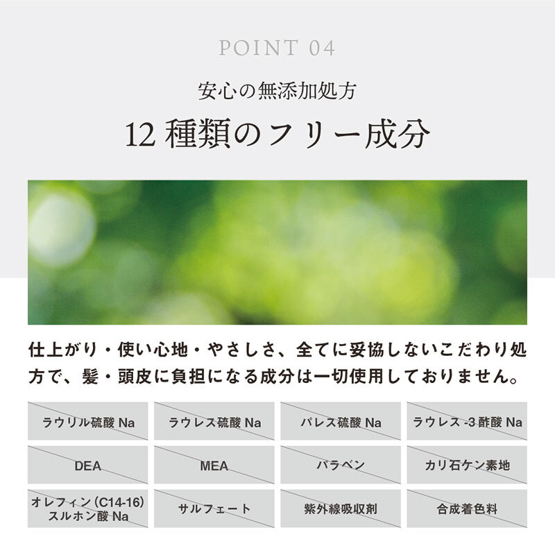 髪のハリコシを強化するヘマチンなどのプレミアム美容成分が指通りのいいなめらかなふんわり髪へ導き、頭皮ケアにも働きかけます。ボリュームが出ない軟毛・細毛の方におすすめ。