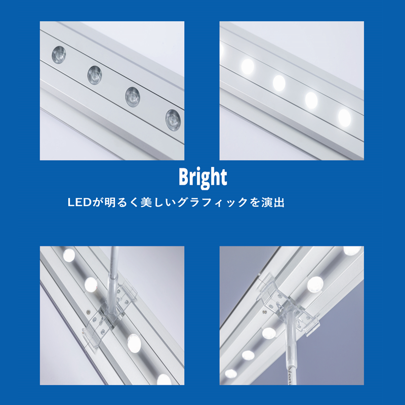 さらにフレームも再生アルミを50%以上使用し、日本で唯一エコマーク取得の布製電照看板です。
