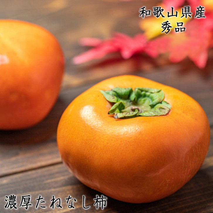 有田みかんをはじめ、あら川の桃など様々なフルーツを栽培しているフルーツ王国和歌山。その中でも柿も生産量日本一を誇り、一流ブランド産地と言われています。収穫の秋を迎える10月頃から種がくて食べやすく甘くて果汁たっぷりの『たねなし柿』の収穫がスタートします。種がないので小さなお子様からご年配の方まで安心して食べやすい果物です。また、たねなし柿はかたさによって味が変わります。シャッキッと感がお好きな方はちょっと青め、やわらかな食感が好きな方は朱色に熟してからお召し上がりください。こだわりのたねなし柿を自信を持ってお届けいたします。是非、ご賞味ください。