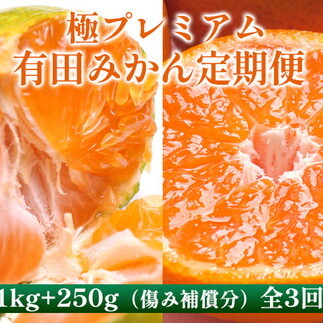 〈定期便〉【10・11・12月 全3回】極プレミアム 有田みかん定期便 1kg+250g (傷み補償分) ※北海道・沖縄・離島への配送不可