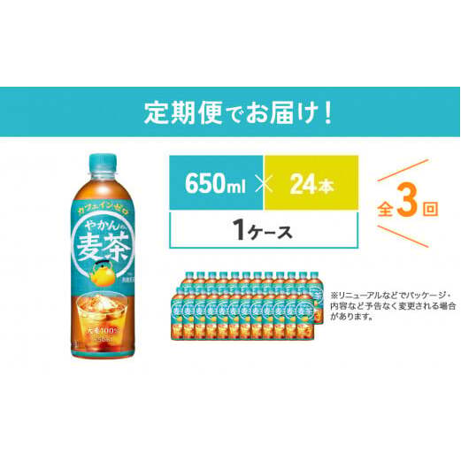 【3回定期便】やかんの麦茶 from 爽健美茶 PET 650ml 24本×3回 合計72本 3ヶ月【コカコーラ】 日本茶 お茶 麦茶 ペットボトル カフェインゼロ 常温 常温 送料無料 こども 美容 むくみ