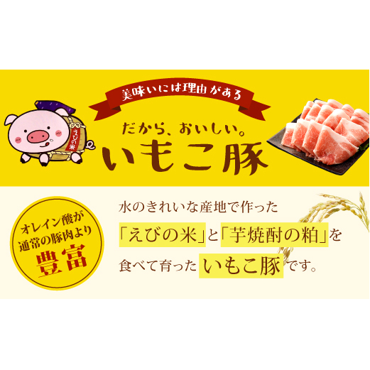 「いもこ豚」とは、宮崎県えびの市産の「お米」と「焼酎粕」をブレンドした飼料を与え、えびのの山頂で健やかに育った豚です。
