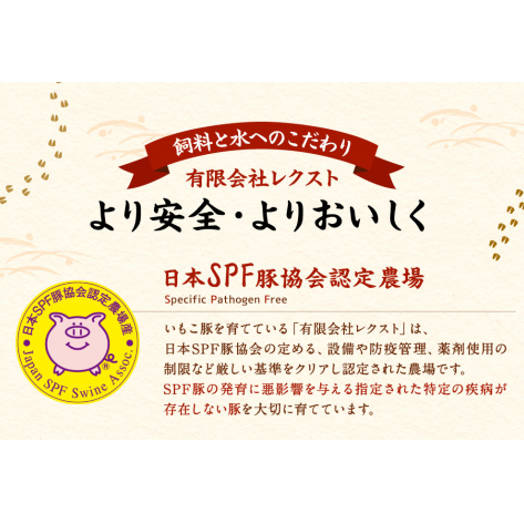 「いもこ豚」とは、宮崎県えびの市産の「お米」と「焼酎粕」をブレンドした飼料を与え、えびのの山頂で健やかに育った豚です。