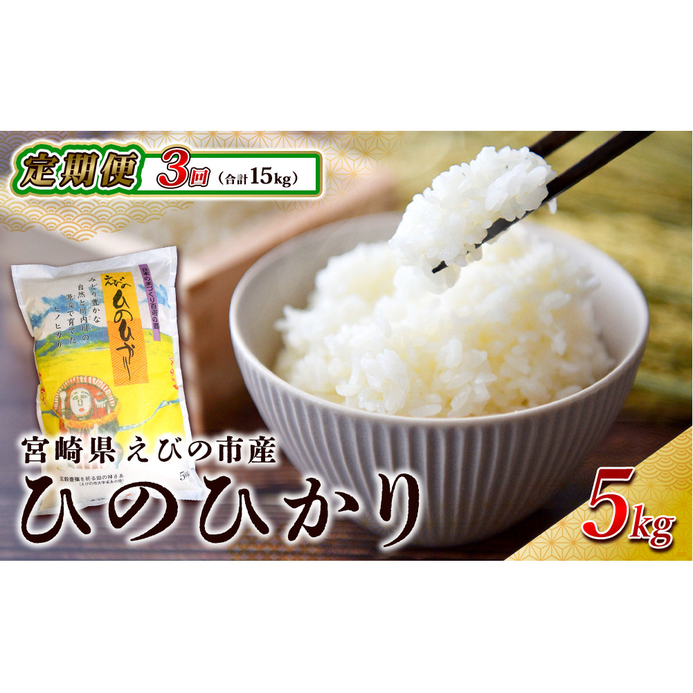 【3回定期便】米 えびの産 ひのひかり 5kg×3ヶ月 合計 15kg 米 お米 精米 白米 ご飯 ヒノヒカリ 国産 宮崎県産 特選米 九州産 送料無料 コメ おにぎり つや 艶 ツヤ たまごかけごはん 卵かけご飯 卵かけごはん TKG 冷めても美味しい