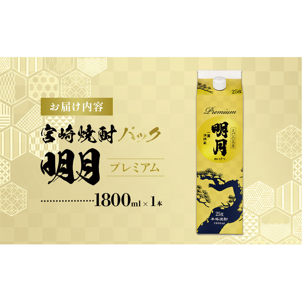6. 明月プレミアム 1800ml パック 1本 焼酎 芋焼酎 芋 お酒 宮崎県産 九州産 霧島山のめぐみめぐる えびの市 送料無料