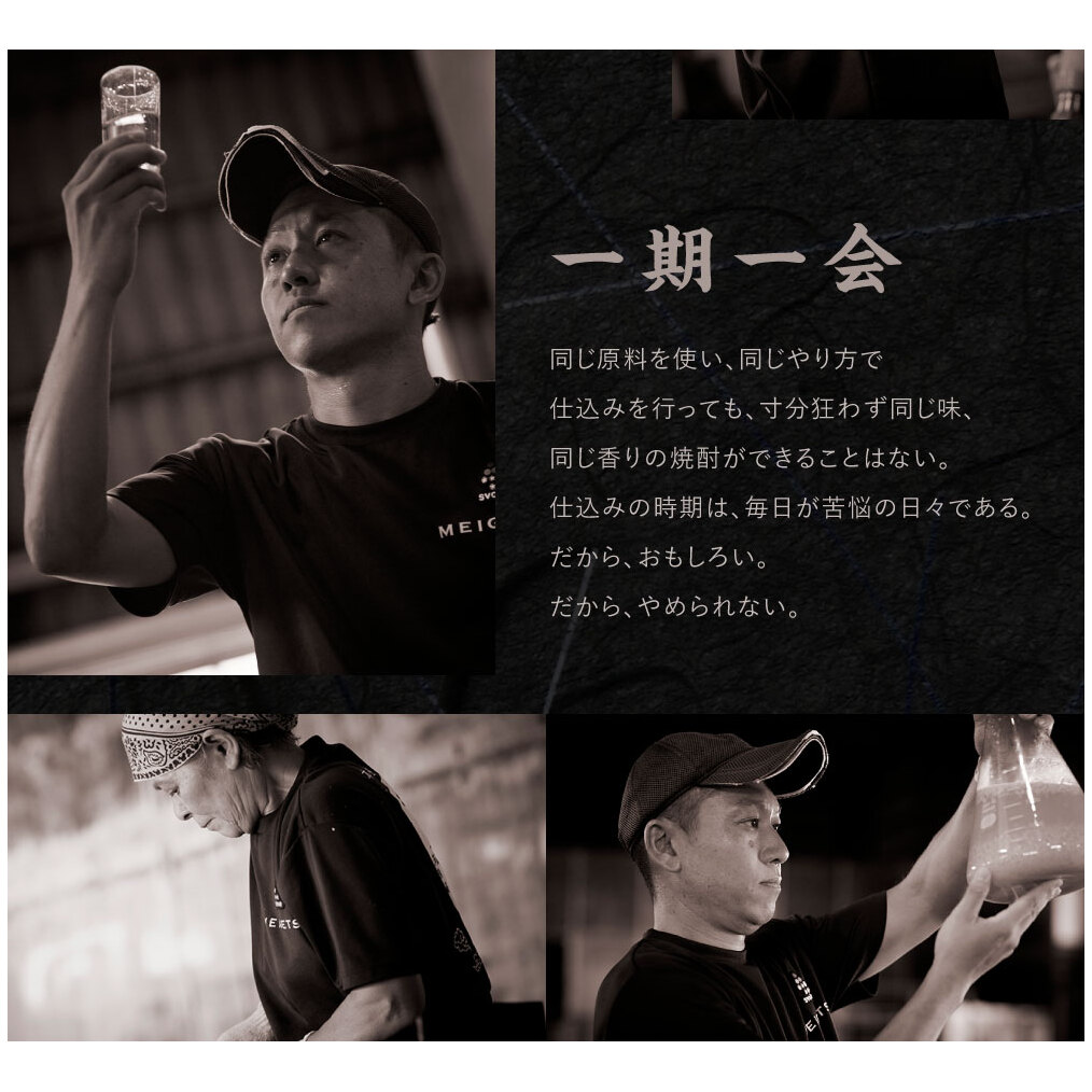 ブレンド後、さらに熟成をさせることにより口にふくんだ瞬間のやわらかい口当たりとのどごし、旨味を凝縮したコク、創業130年の老舗蔵のメインブランド「明月」特有の切れ味を実現した本格芋焼酎。