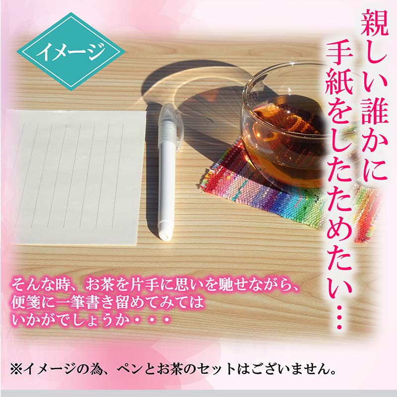そんな阿部さんが作る色鮮やかなコースターでお茶を味わいながら、親しい誰かに馳せた思いを同封の一筆箋にしたため、大切な相手に送ってみてはいかがでしょうか。