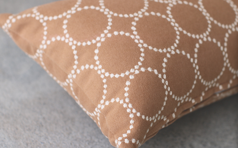 正円では無くフリーハンドで書かれたものをテキスタイルにしており、不揃いがまとまって揃っているように感じる魅力的な柄です。