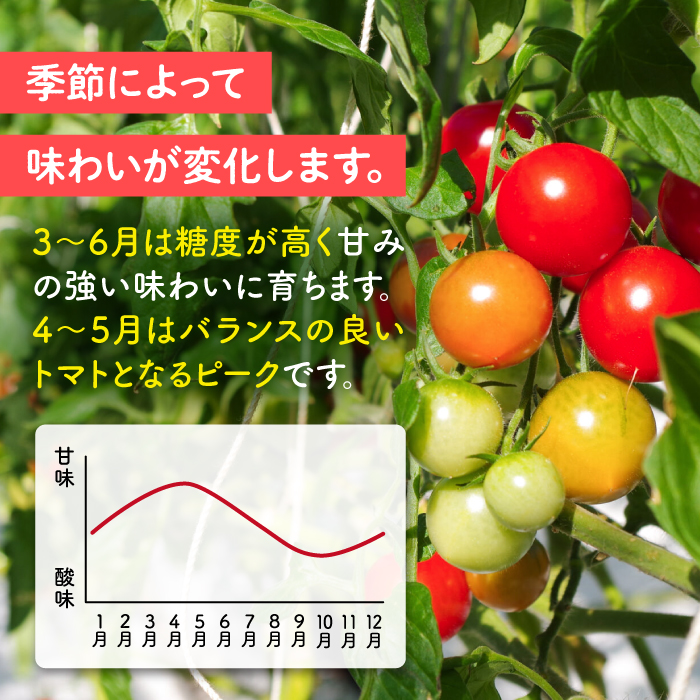 普通のトマトの糖度は4〜5度ですが、当園のトマトは栽培途中から糖度8〜12度と高糖度。