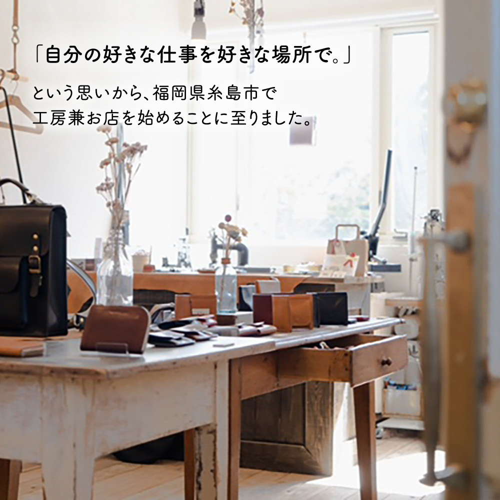 糸島の海に面した店舗で、製作と販売を行うレザークラフトブランドです。