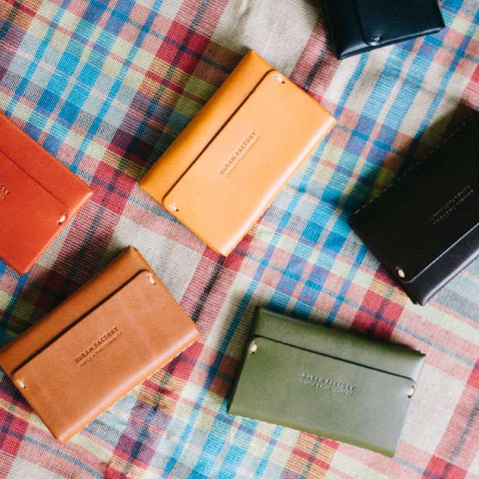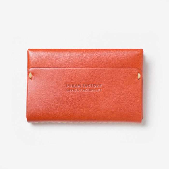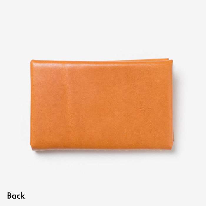 手縫いで制作されたシンプルなボックス型の名刺入れ。2つのメインポケットは名刺の整理に便利です。名刺は30枚ほどが収まりが良いですが、さらに入れることも可能です。