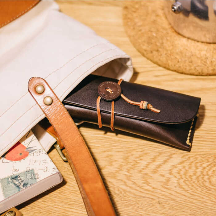 分厚くコシがある革は使うほどに馴染み柔らかくなっていきます。麻糸のステッチは手縫いによるもの。1つ1つ手作りいたします。